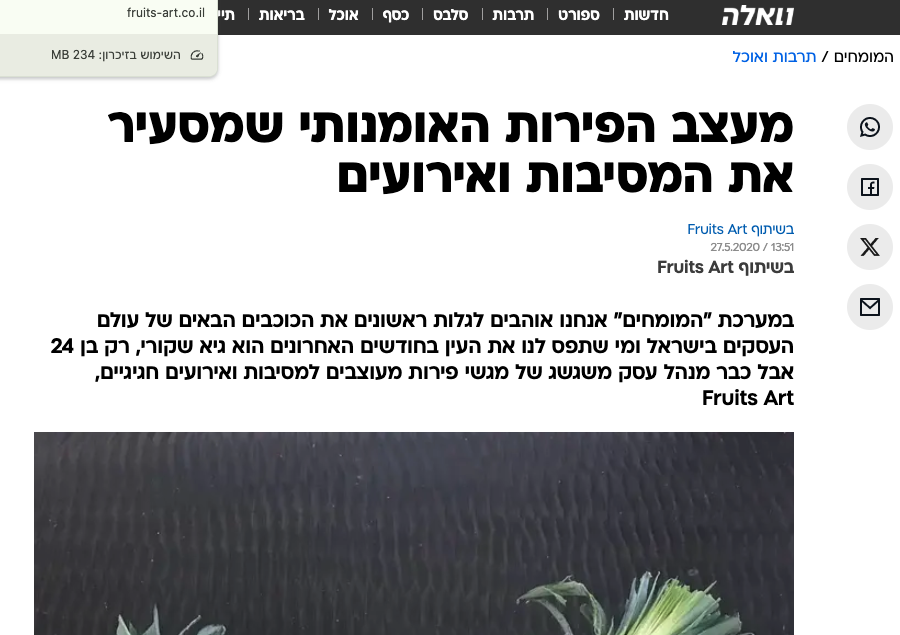 החברה קיימת מעל ל-9 שנים ונכון להיום נמנית בין החברות המובילות בתחום עיצוב הפירות בישראל.