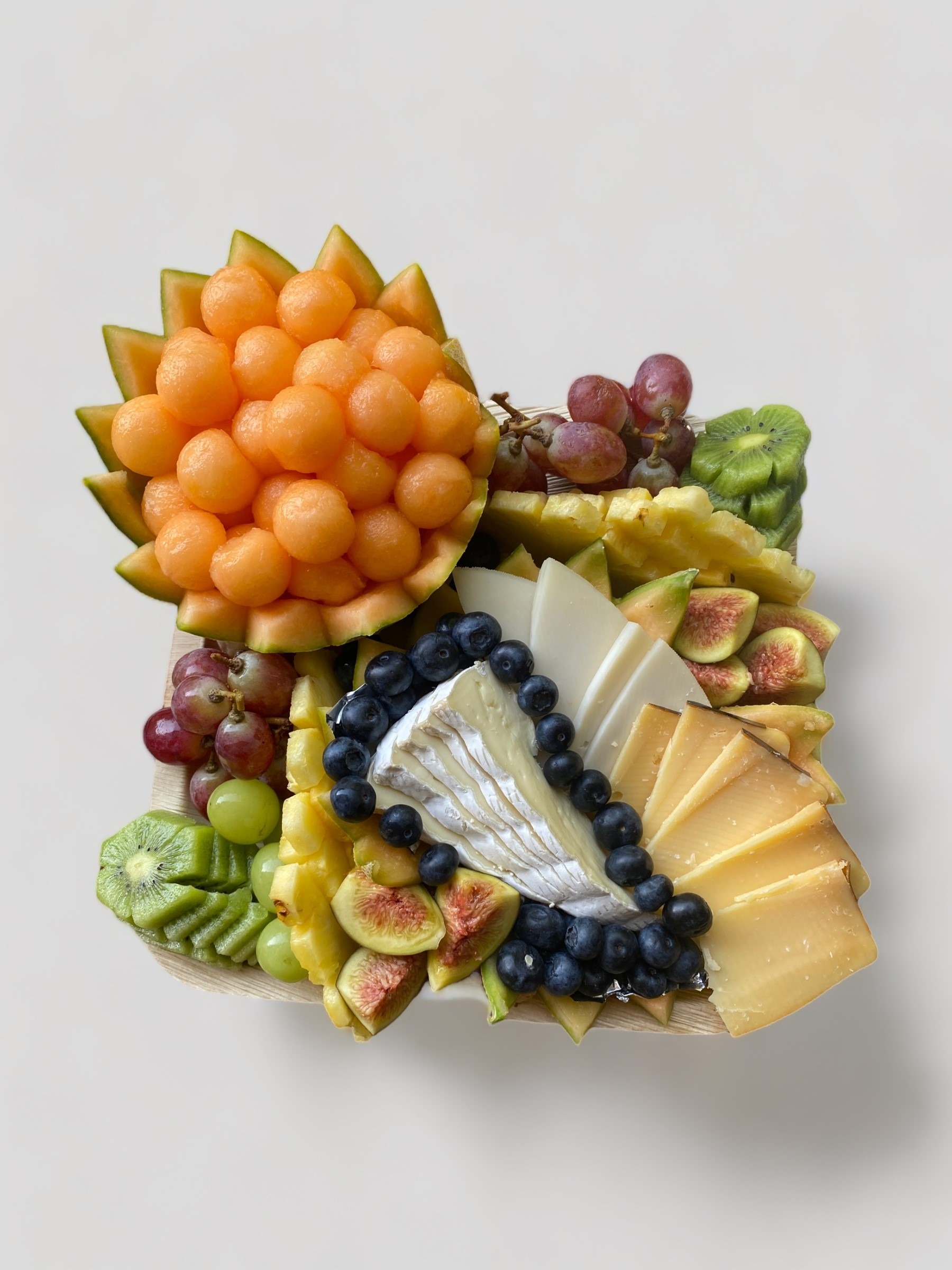 מגש פירות פרמיום זוגי בשילוב פירות גבינות קשות, פיצוחים ועוד הפתעות.