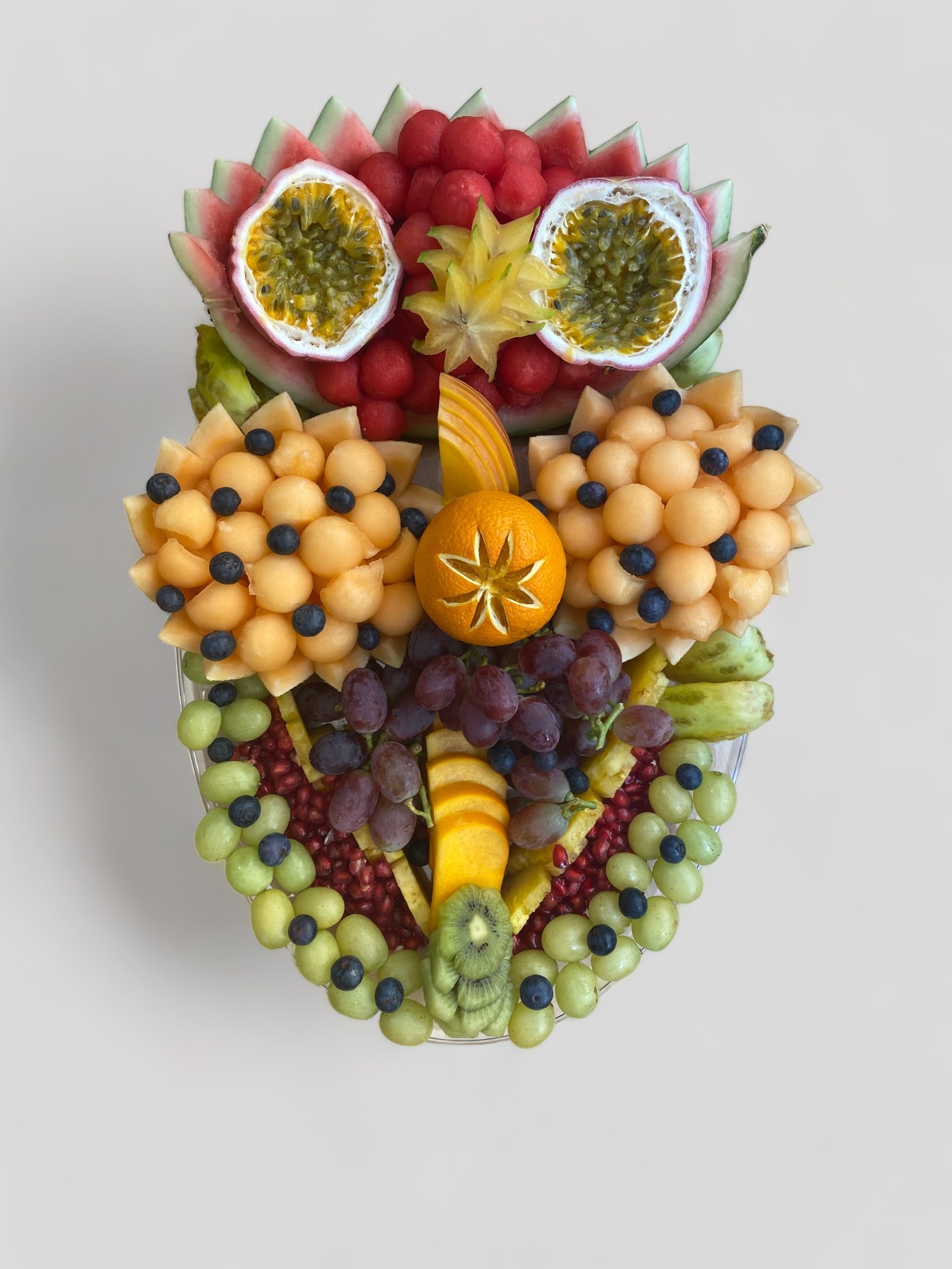 מגש פירות פרימיום אובלי ענק בשילוב פירות יער טריים.
