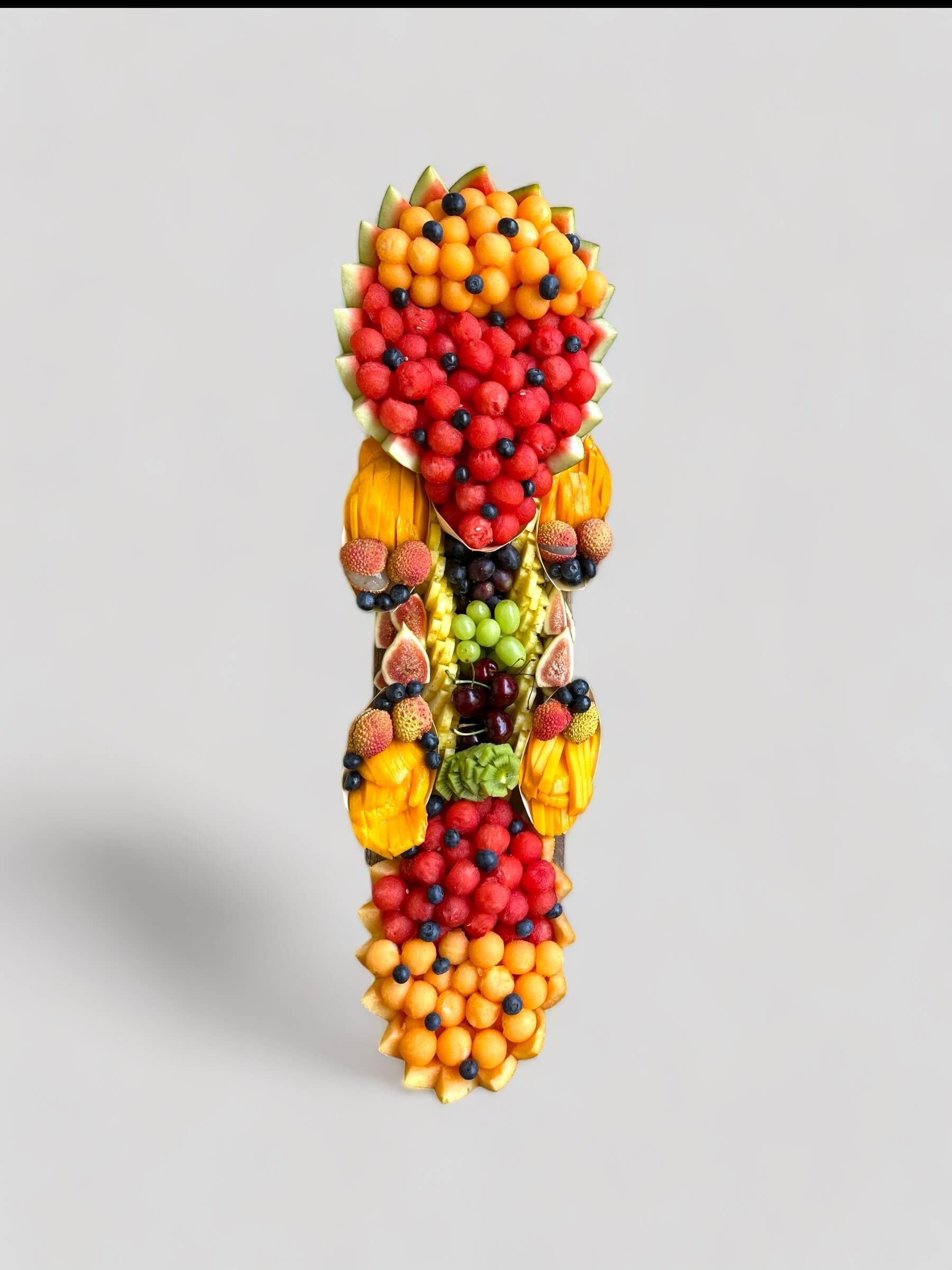 מגש פירות פרמיום המכיל עד 12 סוגי פירות מובחרים המעוצבים בעבודת יד קפדנית.